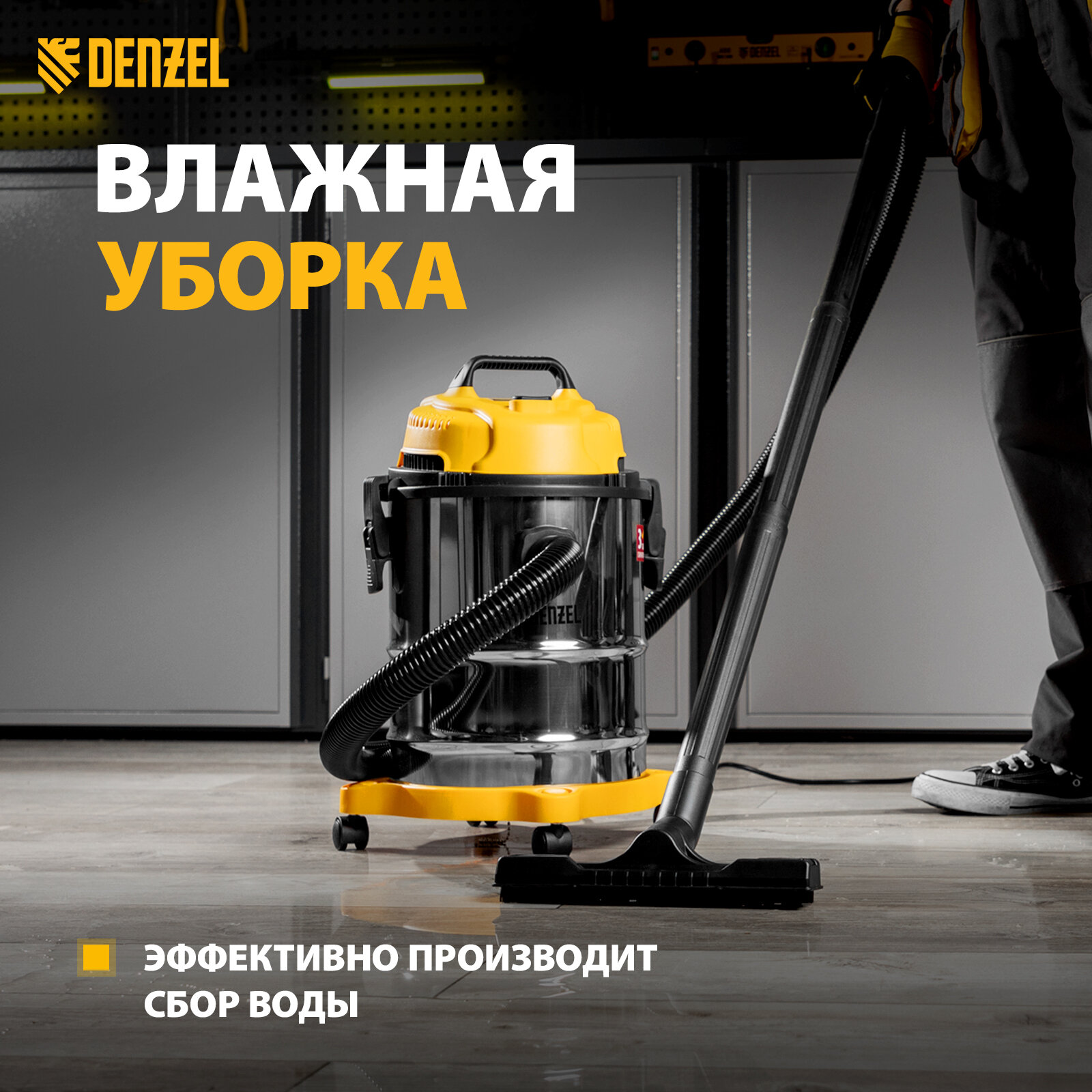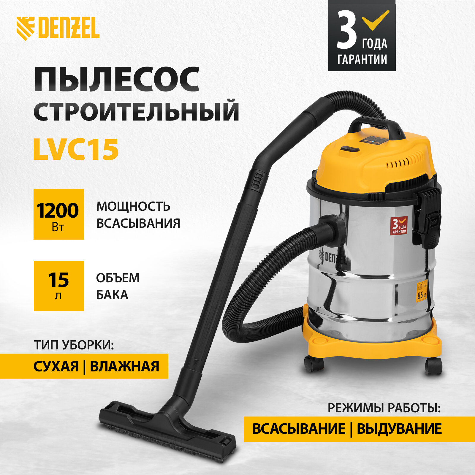 10 цен на Пылесос строительный Denzel LVC15 1200 Вт, бак 15 л, шланг 2 м 28291
