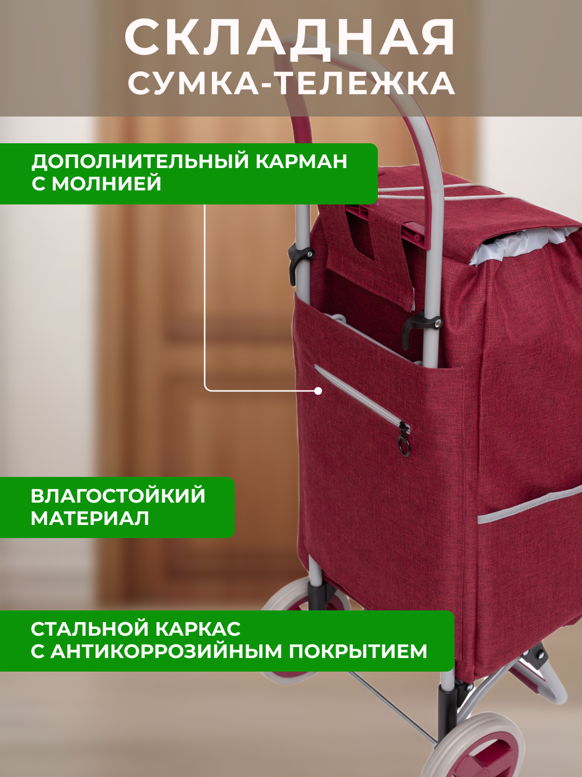 Сумка хозяйственная на колесах складная, Baudet, STB 0521009 (бордовый) 30 л информация: