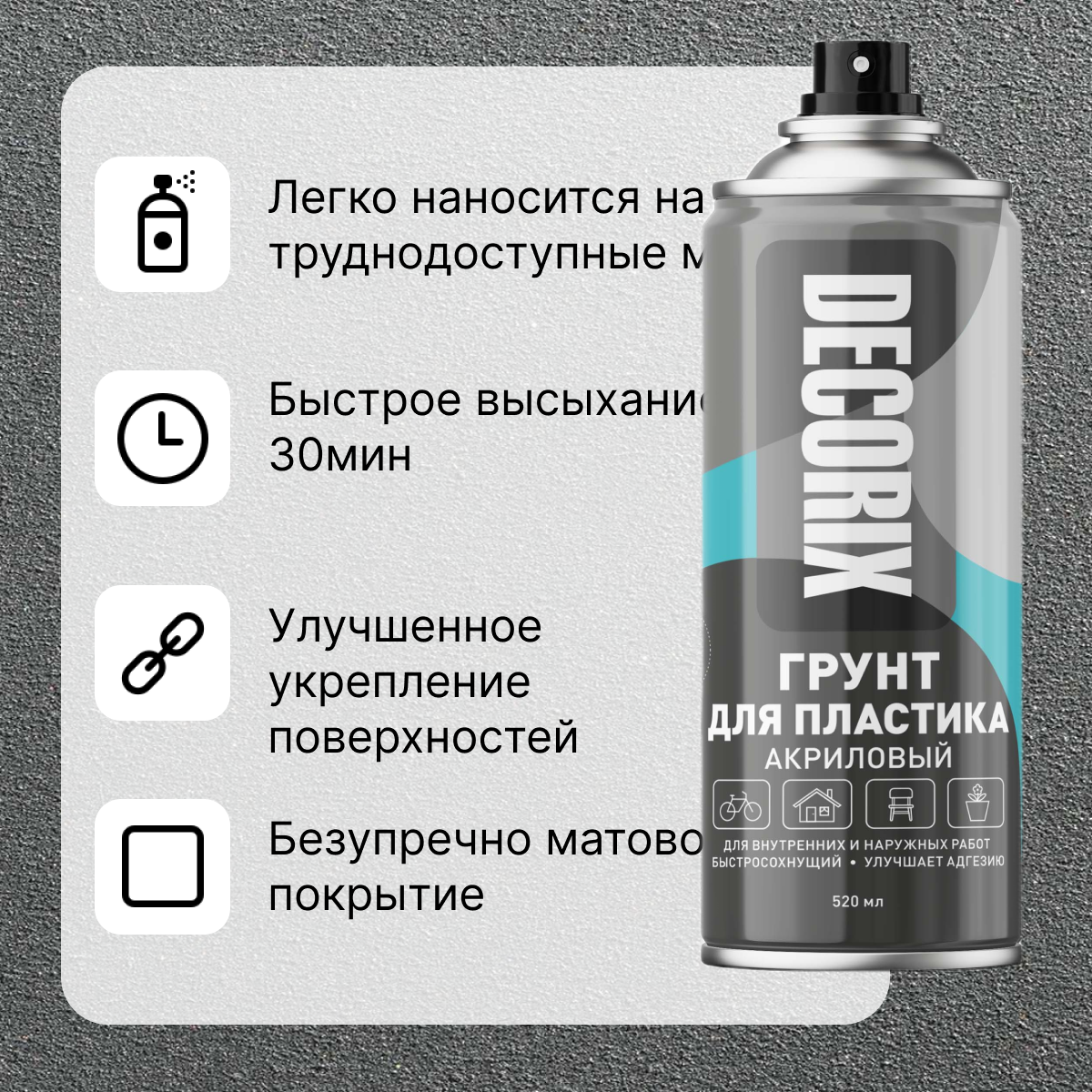 Грунт по пластику акриловый DECORIX серый 520мл информация: