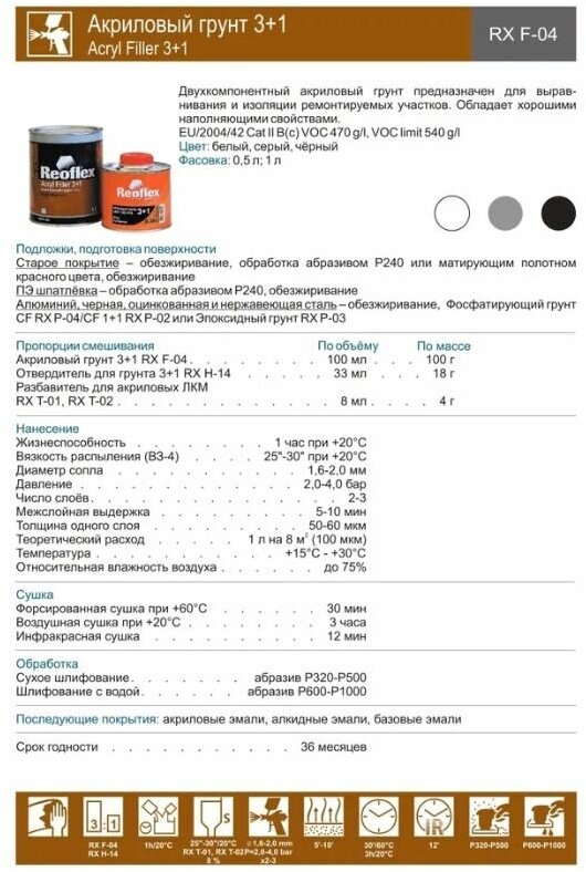 Акриловый выравнивающий грунт Reoflex 1K Acryl Sealer RX F-02 черный 1 кг. информация: