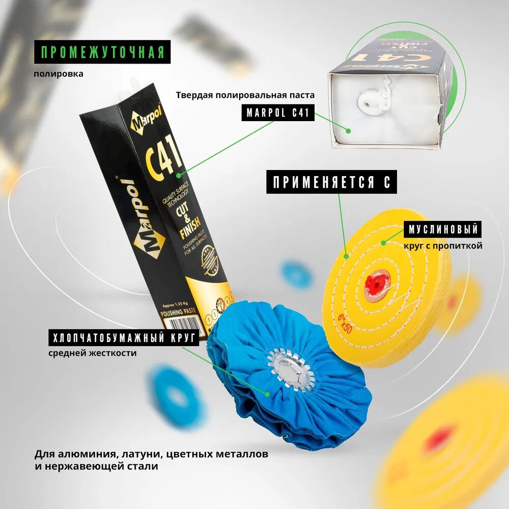 Отзывы на Твердая полировальная паста Marpol C41 для промежуточной полировки алюминия, латуни, цветных металлов и нержавеющей стали, белая, 1.25 кг