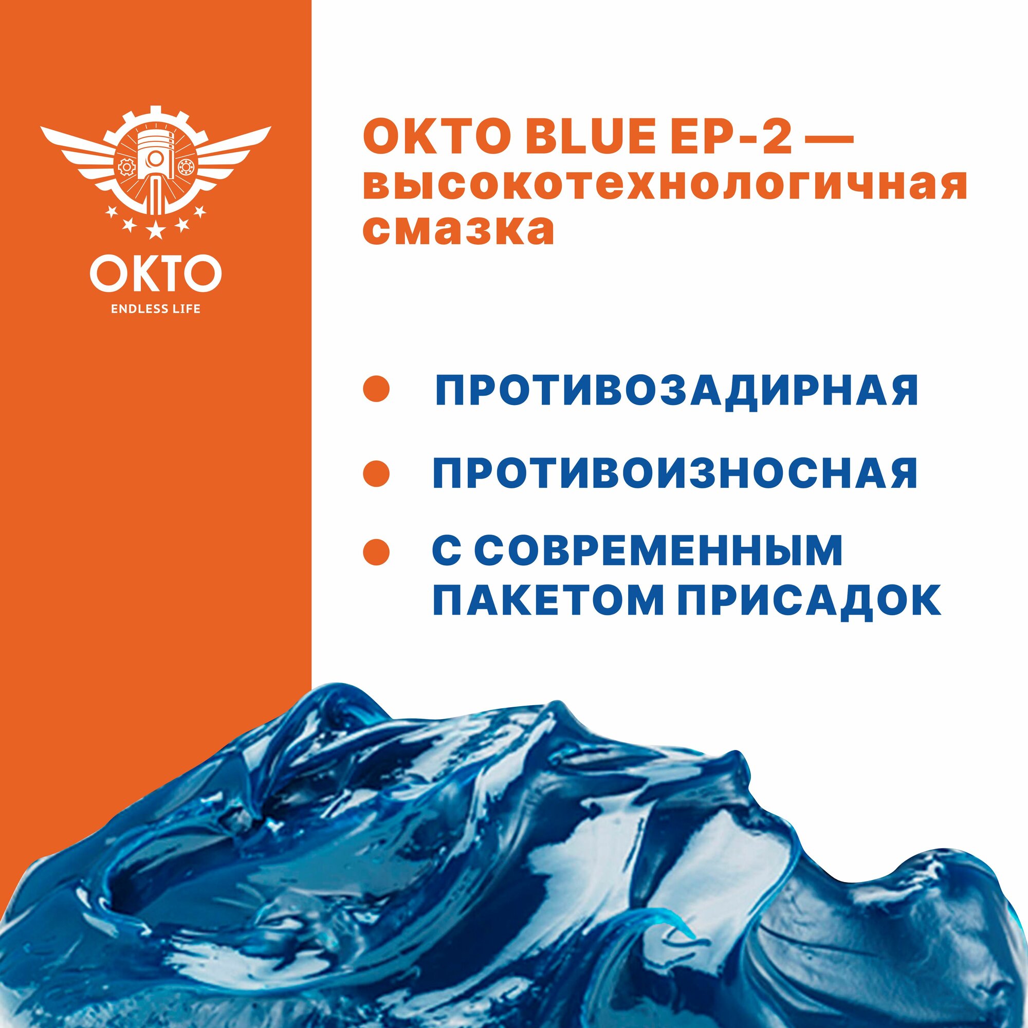 Универсальная синяя смазка окто Grace Blue EP2 NLGI 2, OKTOOIL, 400мл, картридж, туба 714 ₽