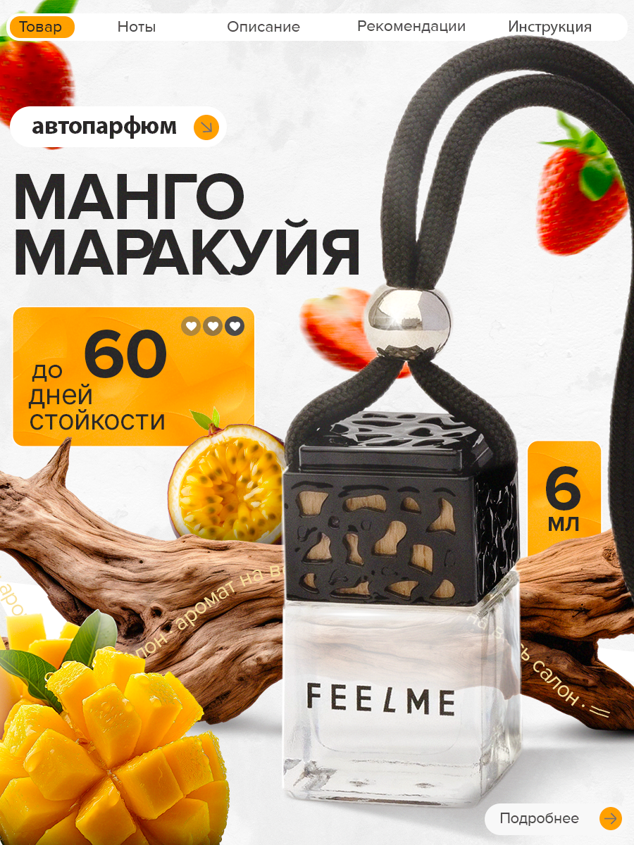 10 цен на Ароматизатор для автомобиля, автопарфюм FEELME №1 Манго Маракуйя