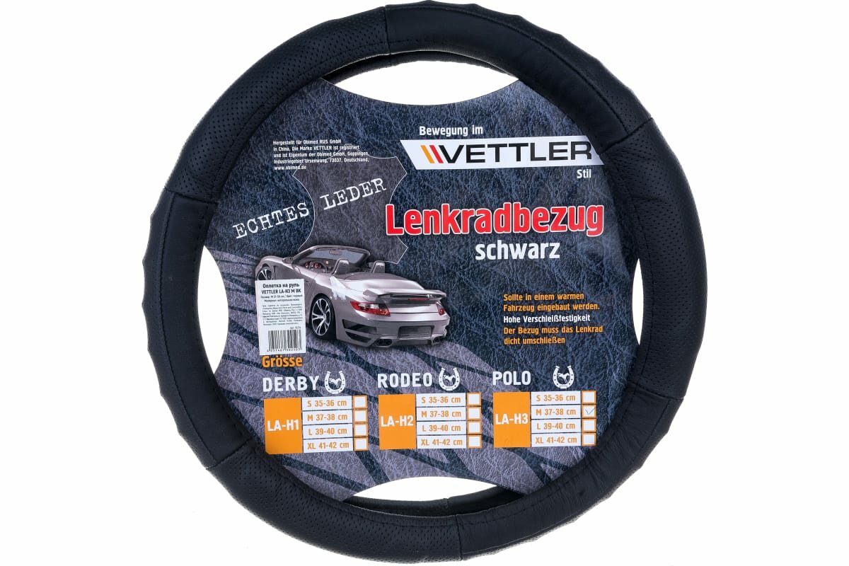 10 цен на Оплетка на руль VETTLER M 37-38 см натуральная кожа, черная POLO