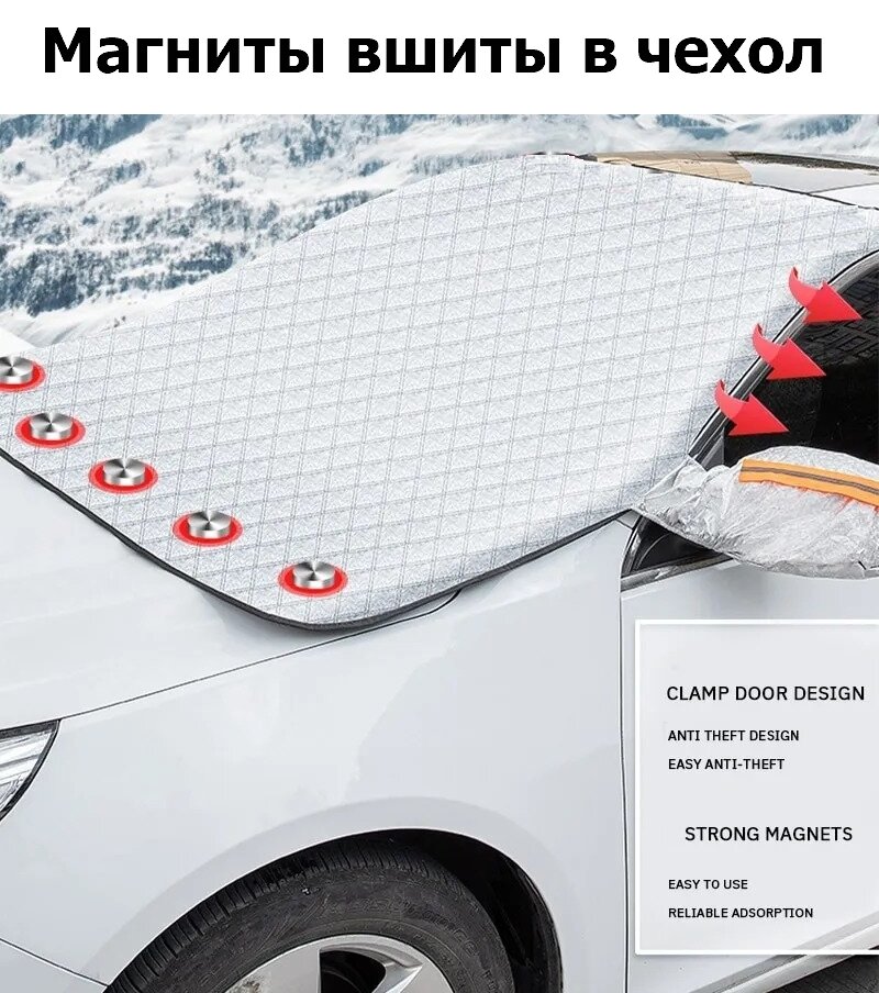 Накидка на лобовое стекло автомобиля от снега, дождя, наледи и солнца, Чехол для лобового стекла с магнитами информация: