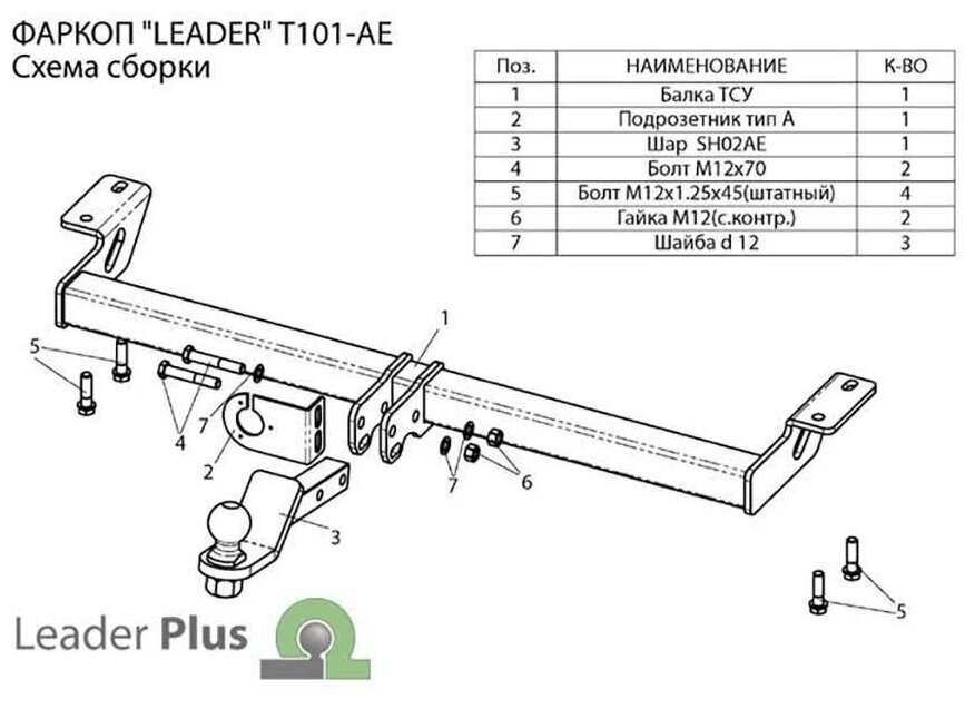 Фаркоп Лидер Плюс на Тойота РАВ 4 2000-2005, арт:T101-AE информация: