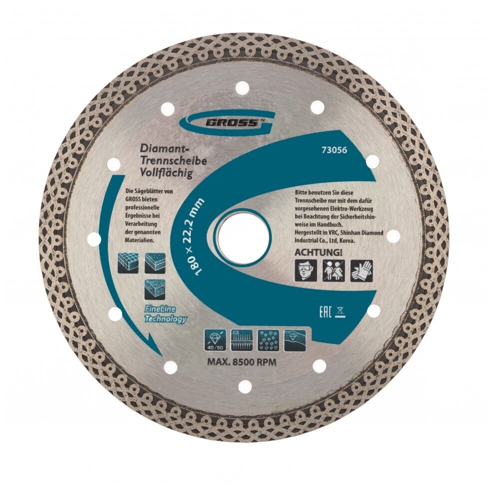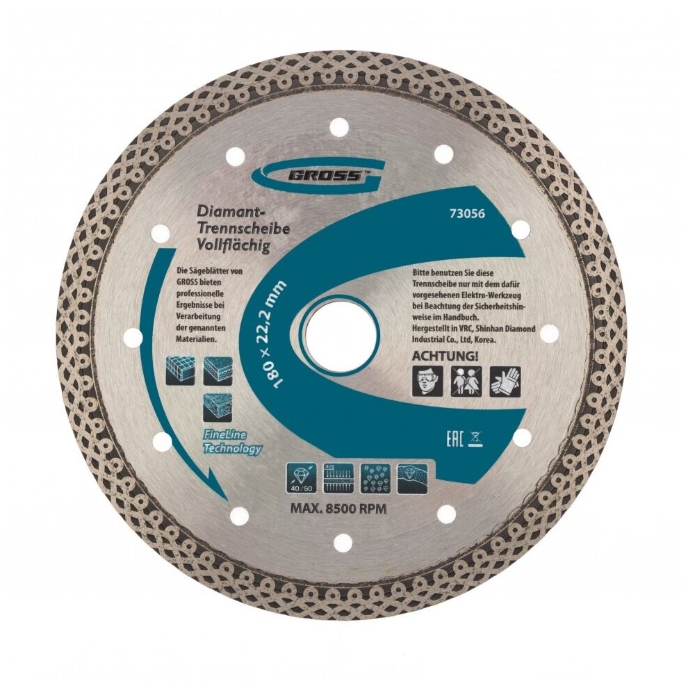 Диск алмазный отрезной Gross 73056, 180 мм 1 шт.