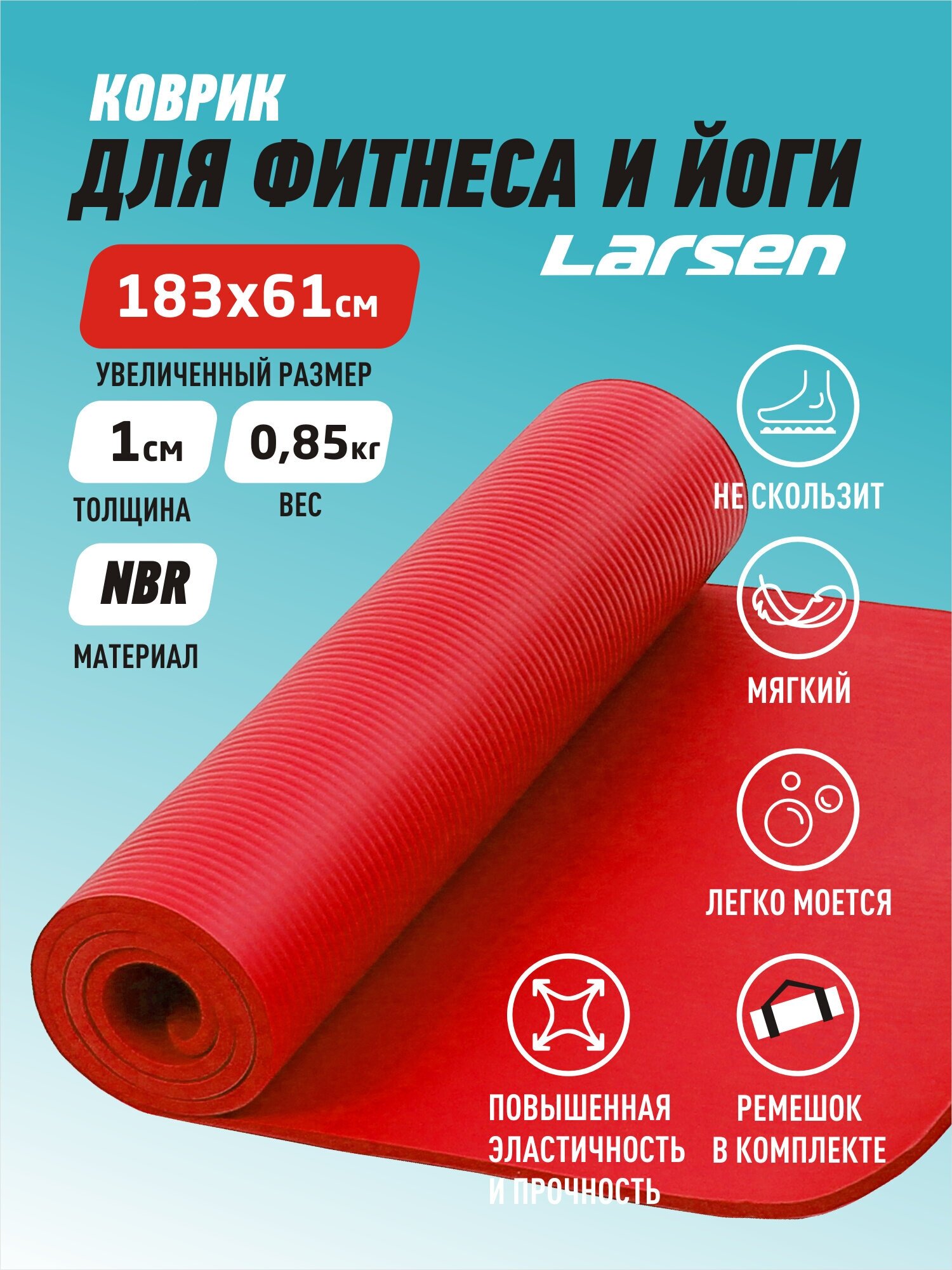 Коврик для фитнеса и йоги Larsen NBR 183*60*1см красный 354078