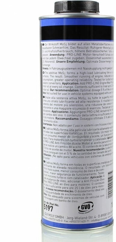 Liqui moli1 LIQUI MOLY Антифрикционная присадка с дисульфидом молибдена LiquiMoly Pro-Line Motor-Verschleiss-Schutz 1L 5197