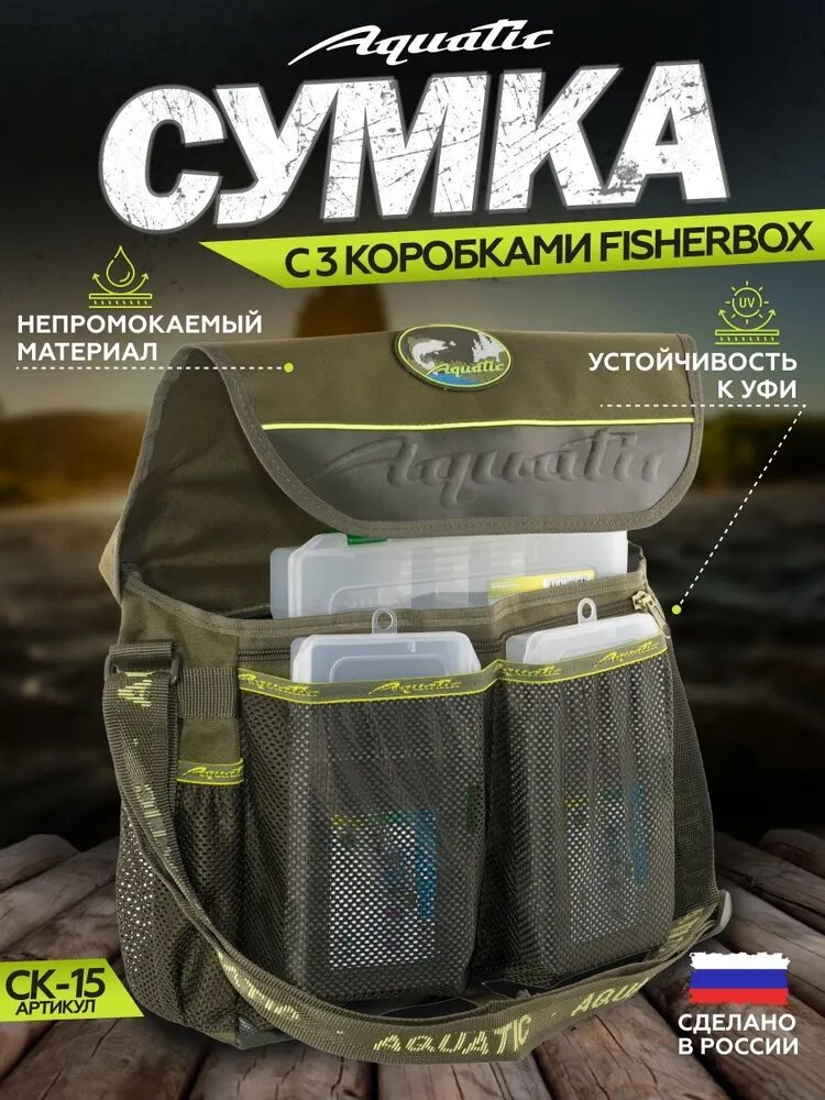 AQUATIC Сумка рыболовная Aquatic СК-12 с 5 коробками (FisherBox, 19x26 см)
