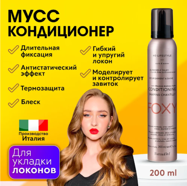 FARMAVITA / Мусс кондиционер HD LIFE STYLE CONDITIONING SHAPING CHANTILLY для укладки локонов 200 мл