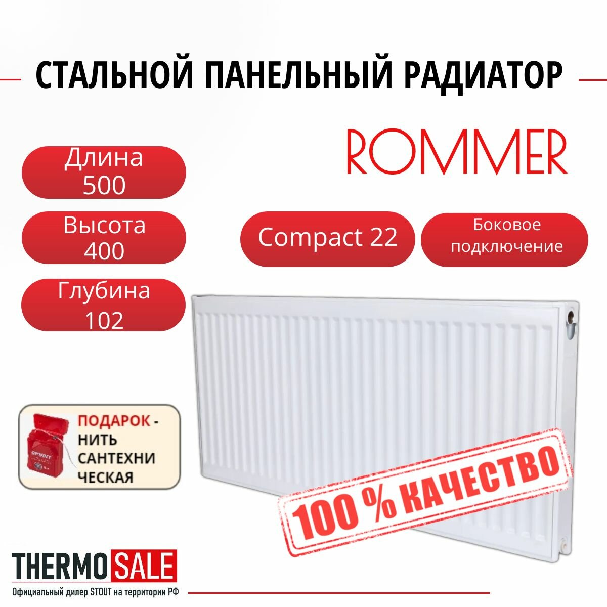 10 цен на Радиатор стальной панельный ROMMER 400х500 боковое подключение Compact 22/400/500 Нить сантехническая