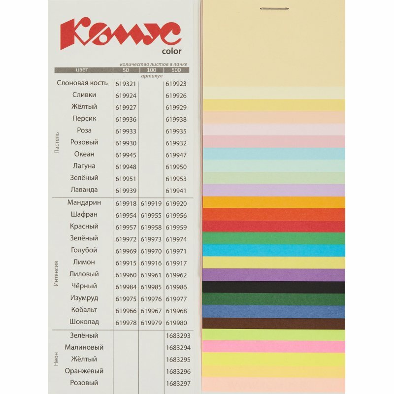 Бумага цветная А4 Комус Color, 5 цветов по 20 листов, пастель, 80 г/кв.м, 100 листов (658907) 494 ₽