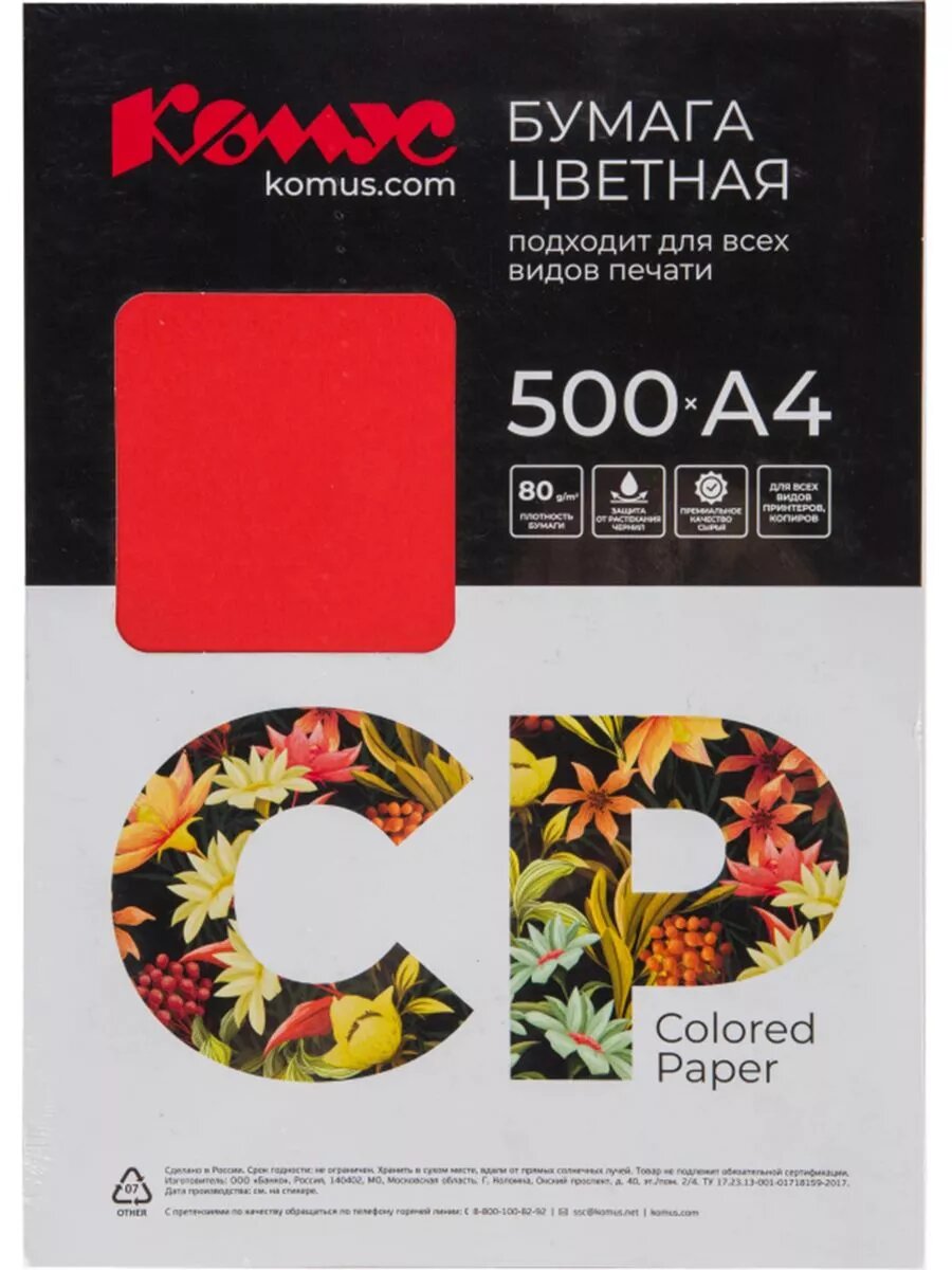 Бумага цветная CP (А4,80г,кораллово-красный интен.) 500л информация: