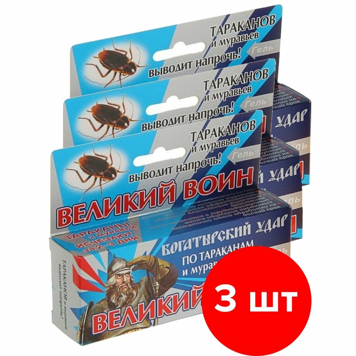 Великий воин гель от тараканов и муравьев (45 г/шприц), 3 шт в наборе информация: