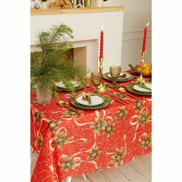 Скатерть новогодняя "Домашний уют" 145*180 см, 100% п/э