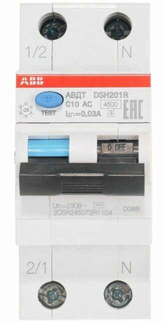 Дифференциальный автомат ABB 1P+N DSH201R C10 30mA информация: