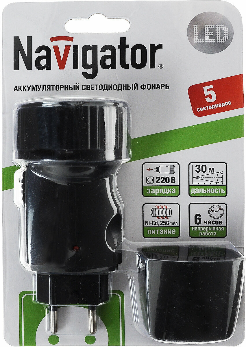 Фонарь Navigator 94 941 NPT-CP02-ACCU 5LED, прямая зар-ка, акк.3.6В, 250мАч., бл информация: