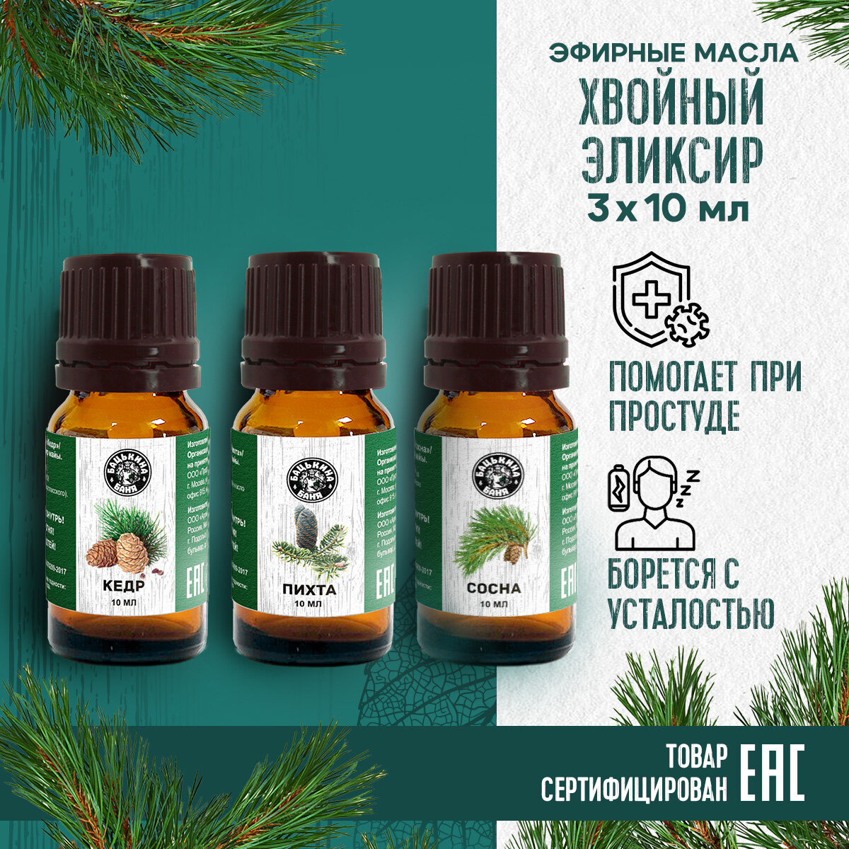 10 цен на Набор эфирных масел 3 шт. Хвойный эликсир (Кедр, Пихта, Сосна), эфирное масло