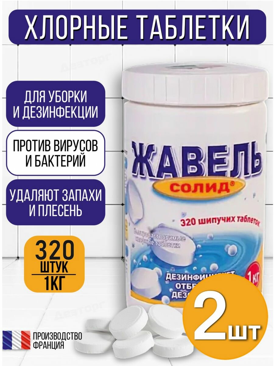 Средство дезинфицирующее 1 кг, жавель солид, таблетки 320 штук