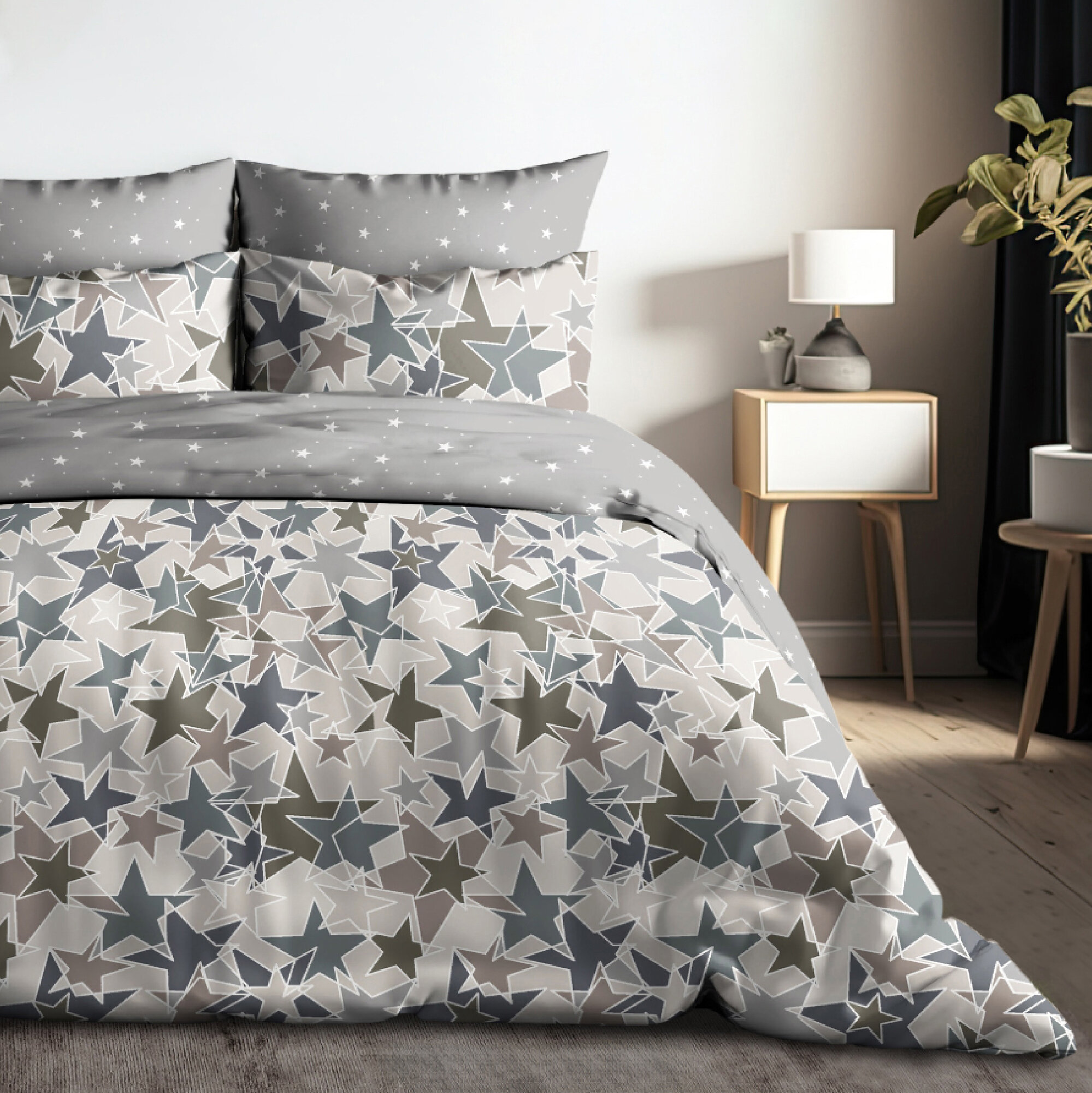 Постельное белье Сказка Сатин "Lester" 1,5-сп наволочка 50х70 1шт Простынь на резинке 90х200 см Пододеяльник 145х215 см