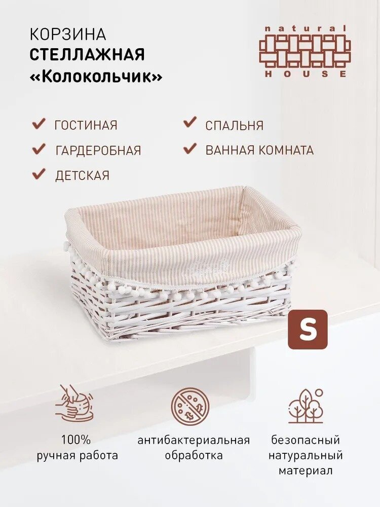 Отзывы на Корзина Natural House стеллажная "Колокольчик" 34х25х15 см, белый (EW-31 S)