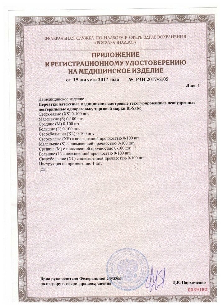 Перчатки медицинские смотровые латексные неопудренные нестерильные BI-SAFE, L 50 пар