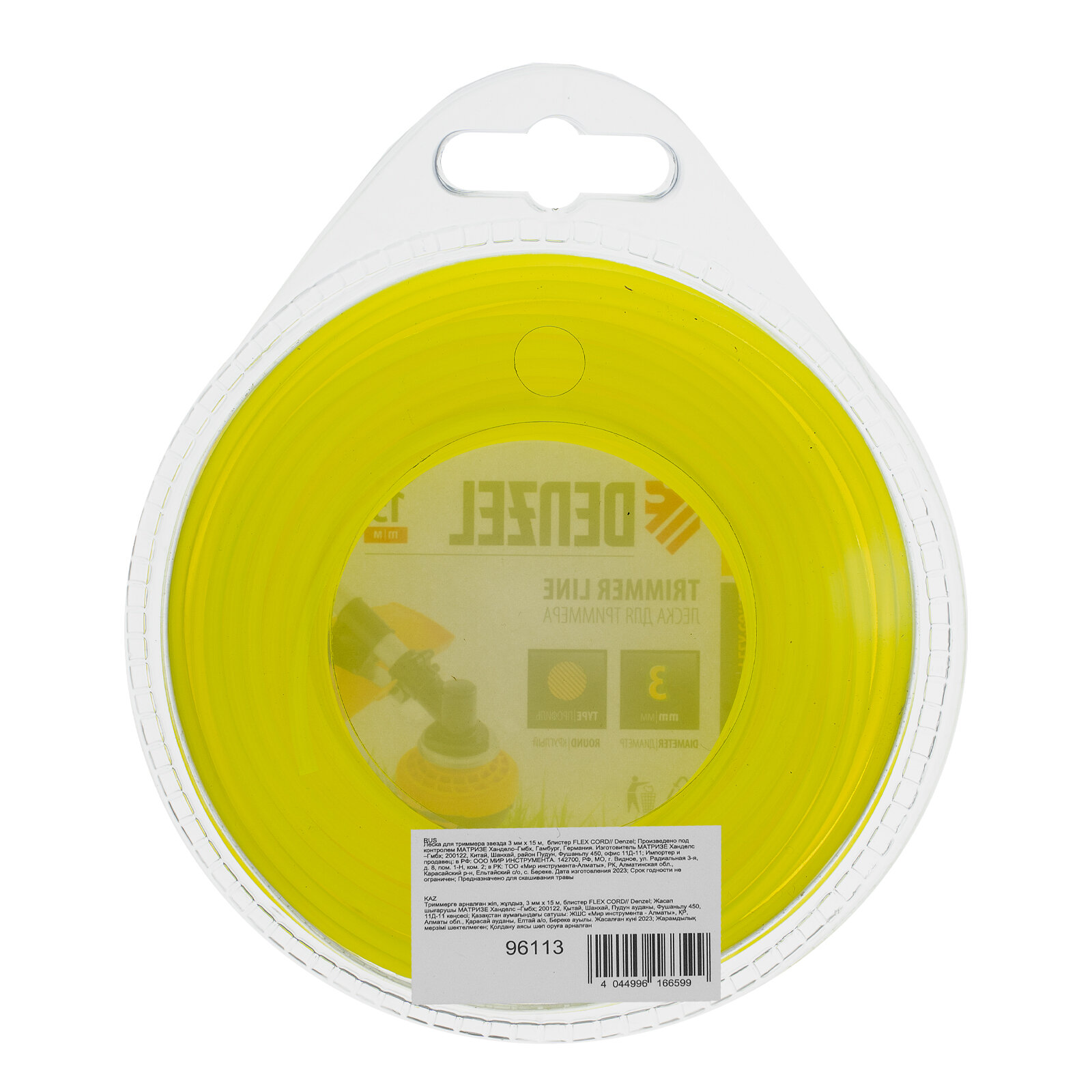 DENZEL 96113 Леска для триммера, звезда 3 мм x15 м, блистер Flexcord Denzel 96113 информация: