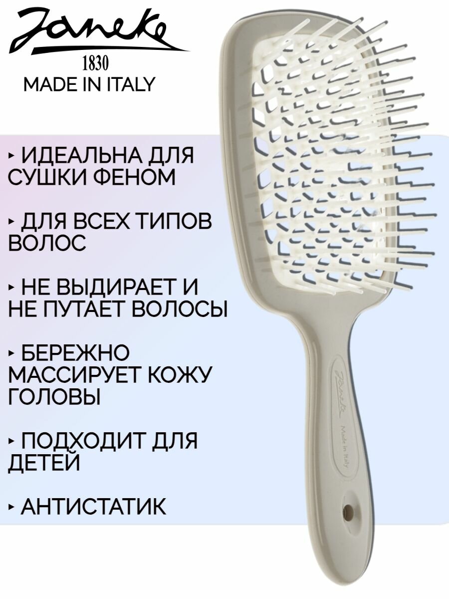 Janeke Щетка Superbrush с закругленными зубчиками, серо-белая, 20.3х8.5х3.1 см информация: