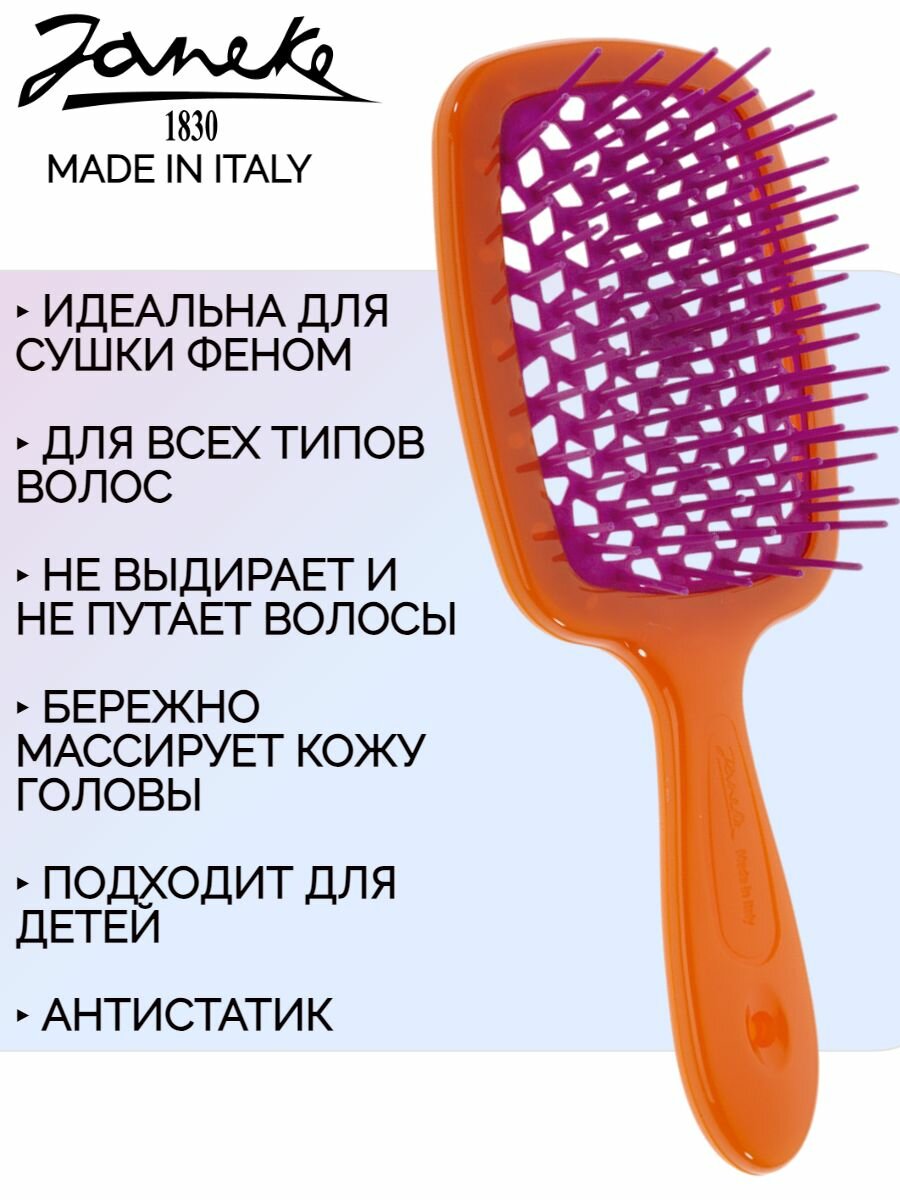 Janeke SUPERBRUSH Щетка для волос, 86SP226ARA, оранжевый, 20,3x8,5x3,1 см информация: