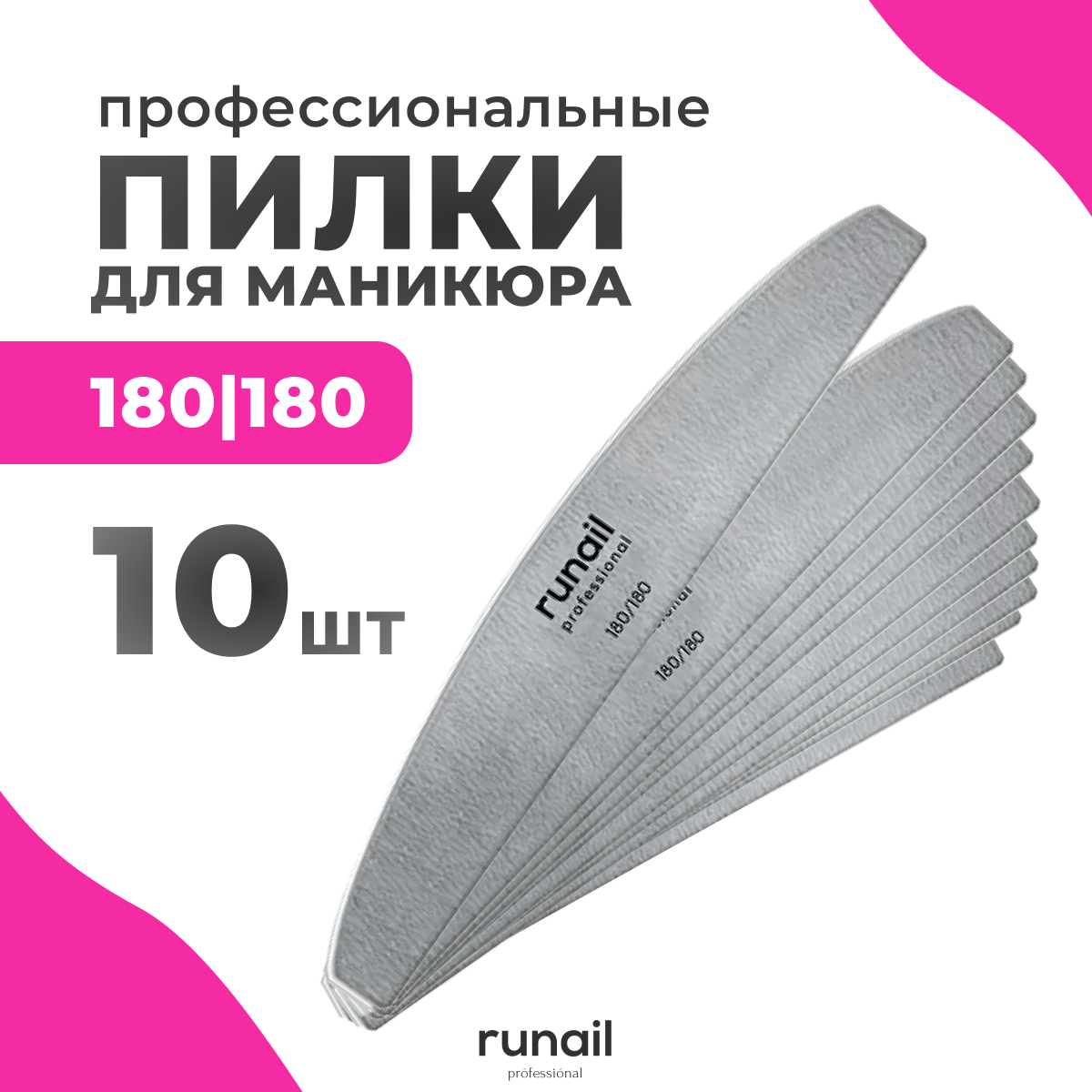 RuNail, набор пилок для ногтей полукруглые (серые, 180/180), 5 шт