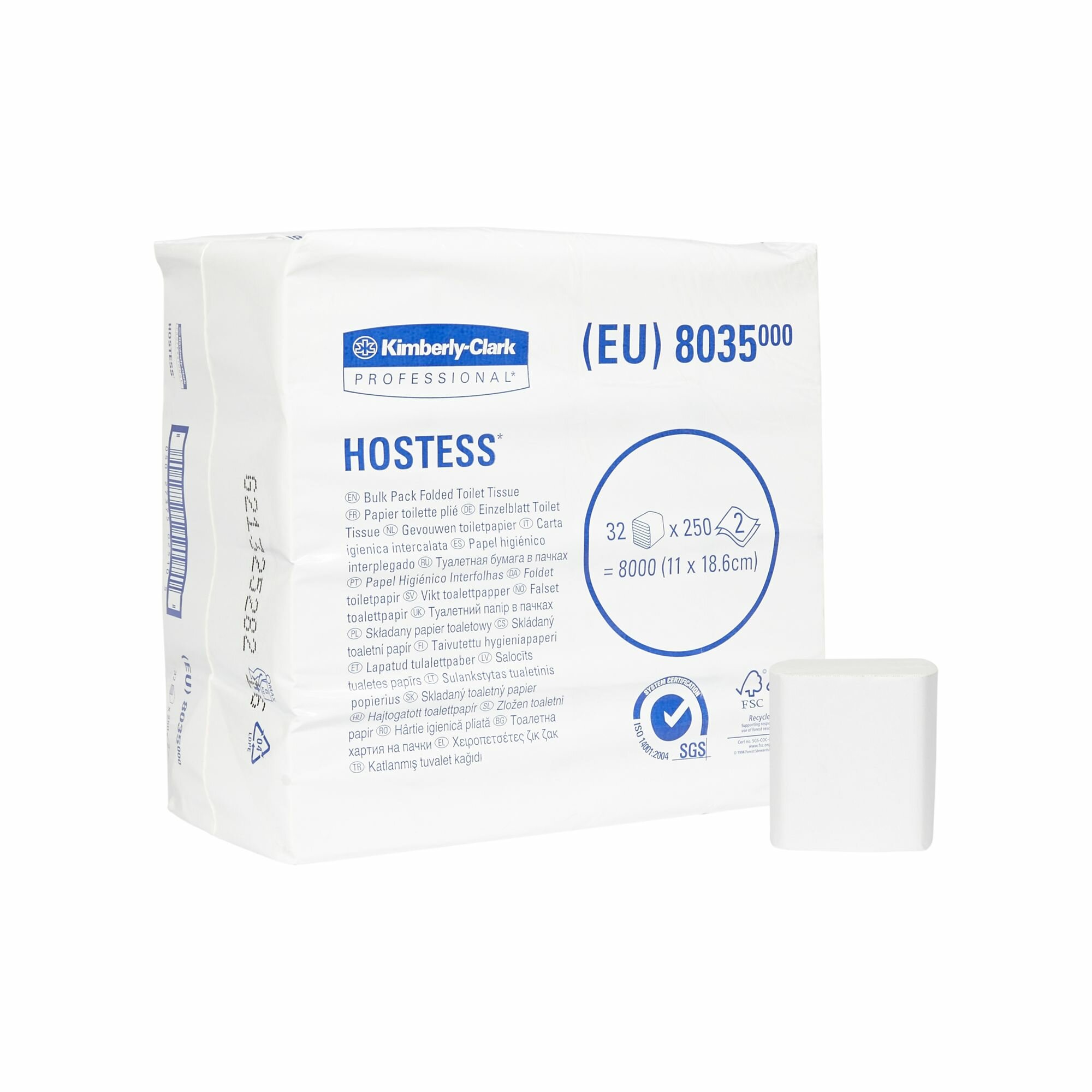 Туалетная бумага листовая Kimberly-Clark Hostess 8035, 250 листов, 2 слоя, 1 пачка информация: