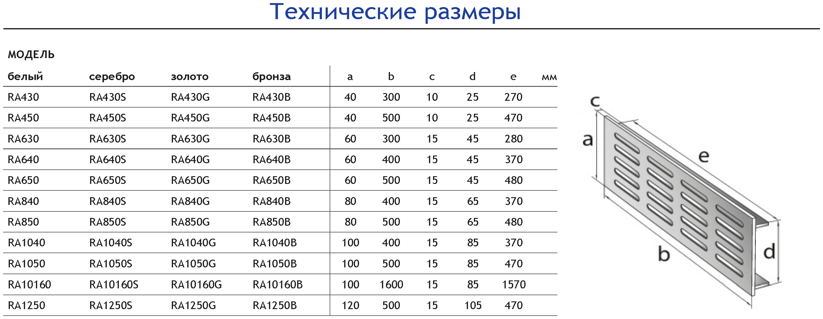 Вентиляционная решетка Europlast RA 1050 100 x 500 мм бронза