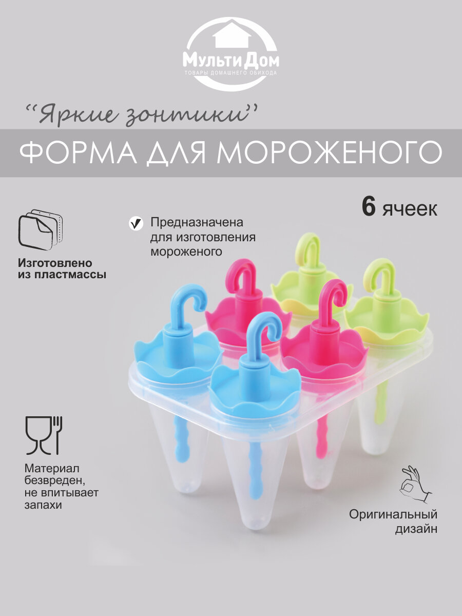 10 цен на Формы для мороженого "Яркие зонтики". 6 ячеек.