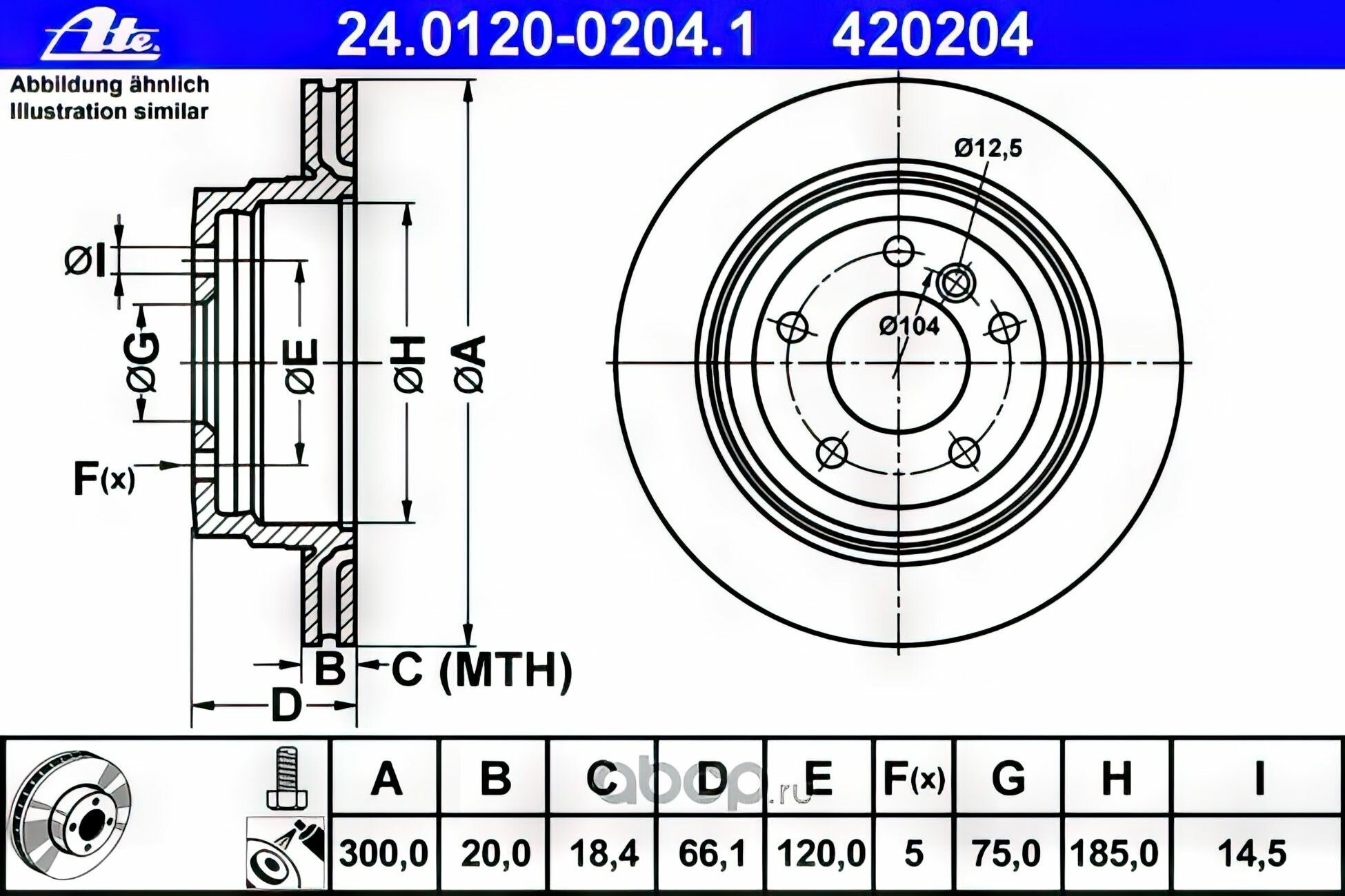 ATE 24.0120-0204.1 Диск тормозной задн, BMW: 1 123 d/130 i 04-12, 1 123 d/130 i 03-12, 3 320 d xDrive/320 si/320 xd/325 i xDrive/325 xi 05-11, 3 Touring 316 i/318 d/318 i/320 d/320 d 2шт