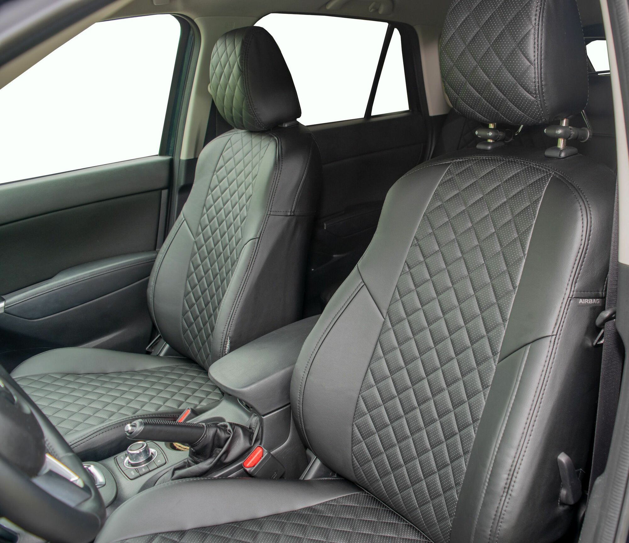 Чехлы на автомобильные сидения Mazda CX-5 (три отд. кресла) Touring, Active, Supreme с 11-17г. (Экокожа ромб, Черный + Темно-серый)