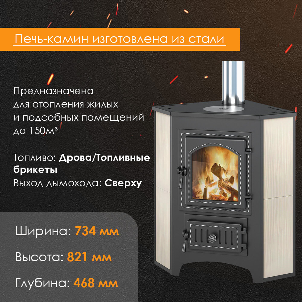 Печь-Камин везувий ПК-01 (220) угловой беж. с конфоркой 9 кВт (150 м3) Ø 115 мм