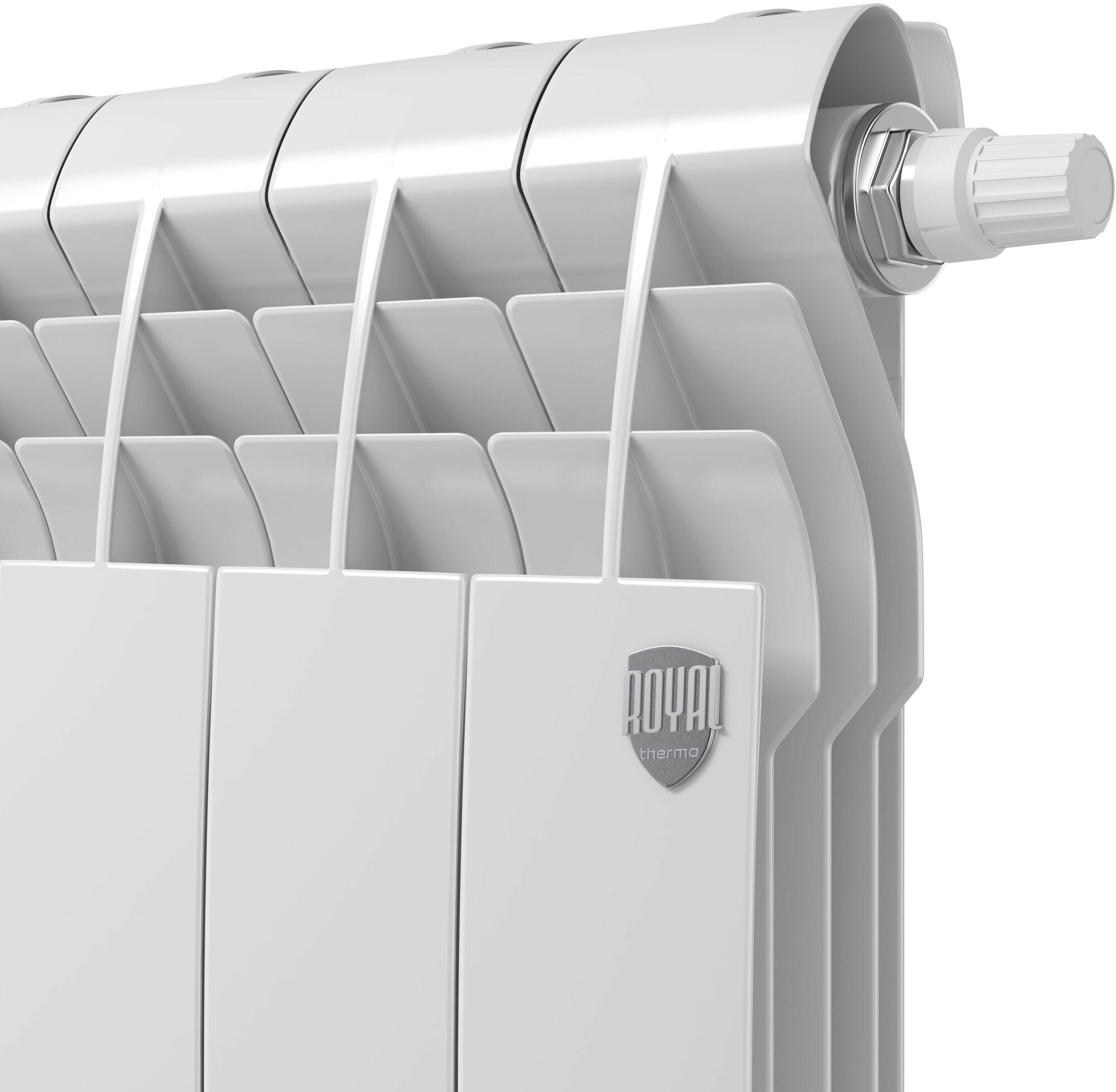 БиМеталлический радиатор Royal Thermo Biliner Bianco Traffico 500 V \ 10 секций \ с нижним правым подключением, термовентиль тип Click