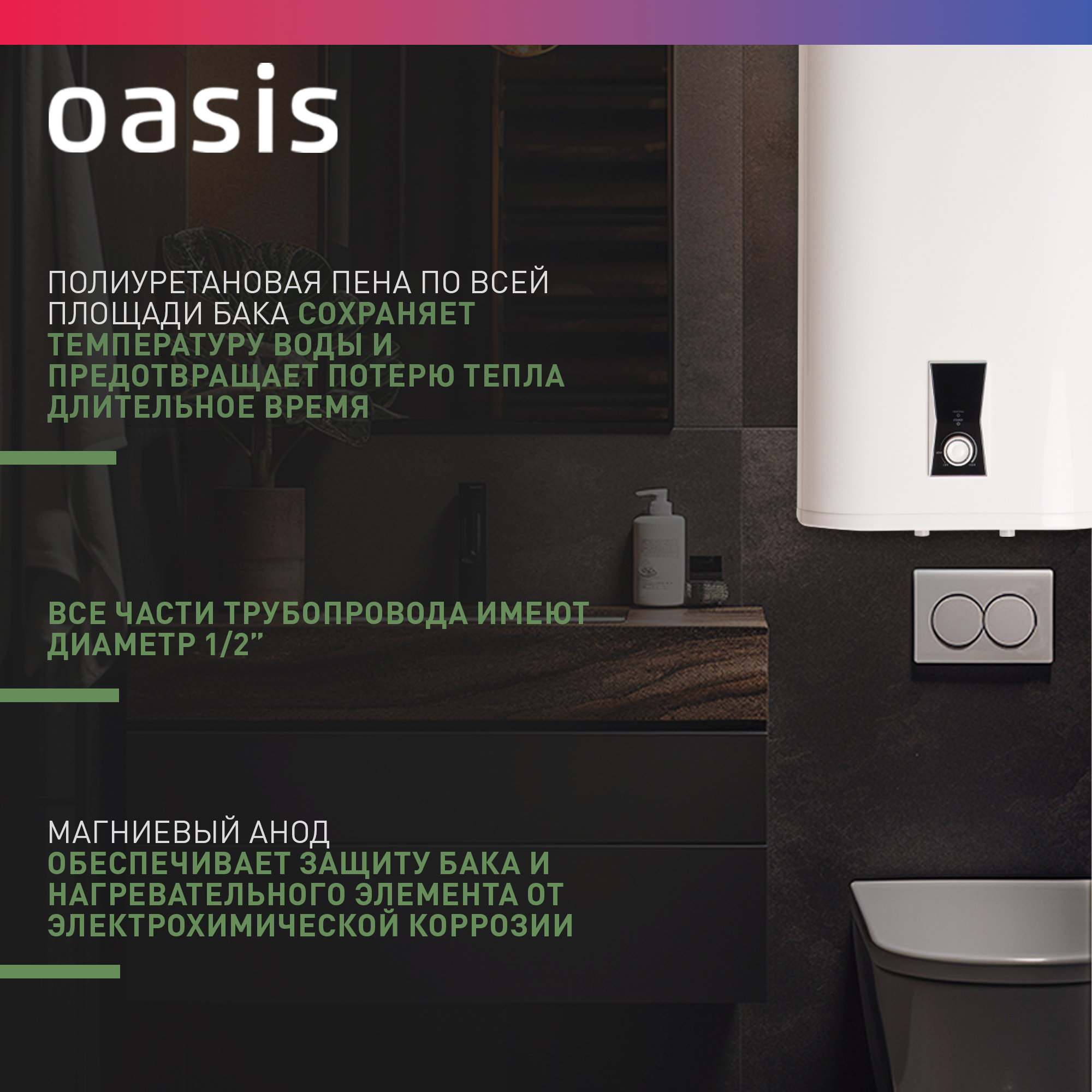 Водонагреватель OASIS, 100 л, 2000 Вт, Нержавеющая сталь, электрический, 100PА