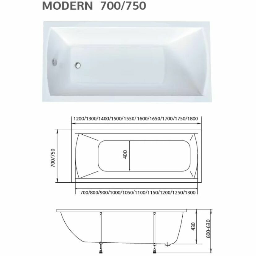 Ванна акриловая прямоугольная 1MarKa Modern 1500х750 белый (01мод1575) информация: