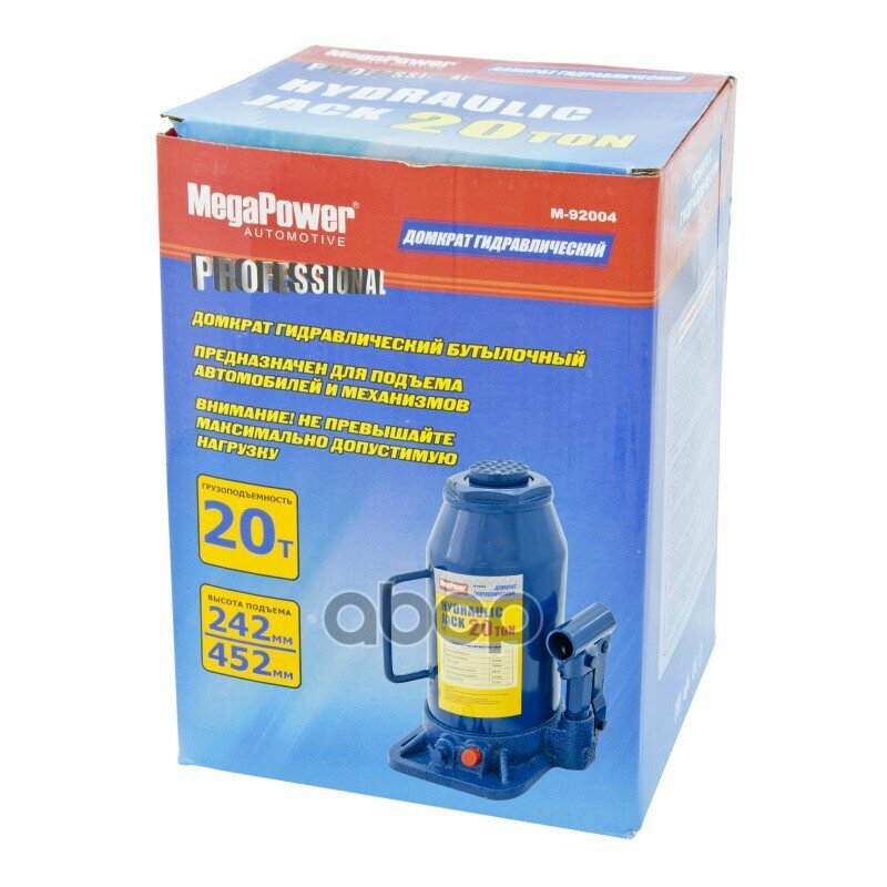 Домкрат Бутылочный 20Т 242-452Мм С Клапаном Megapower MEGAPOWER Automotive арт. M92004