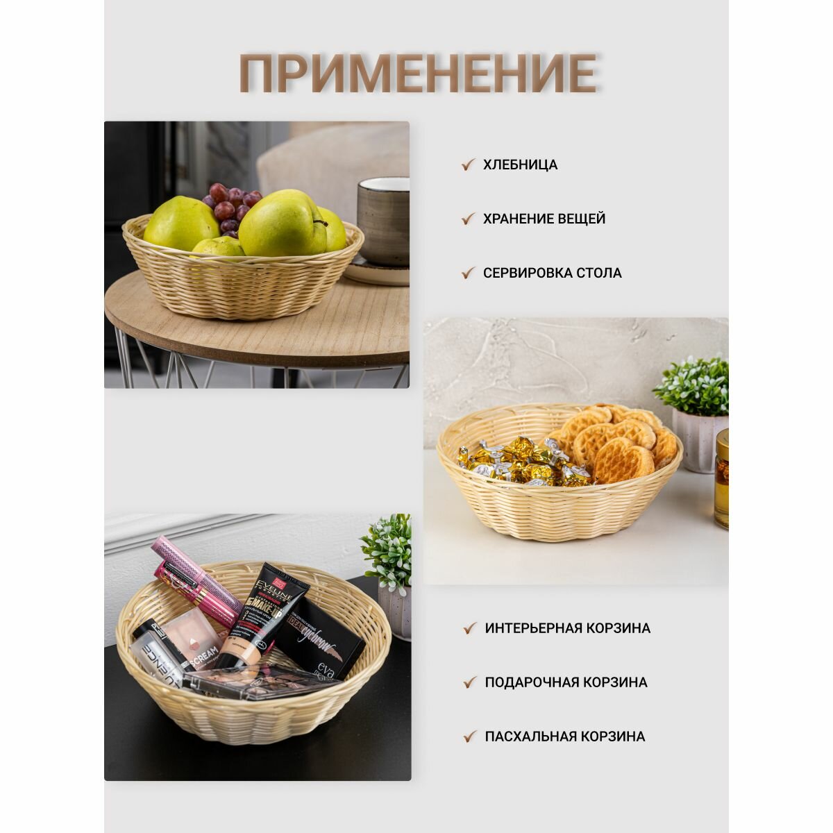 Корзина плетеная GASTRORAG 3002 маленькая, круглая хлебница, сервировочная корзинка для пасхи и хранения вещей, полипропилен информация: