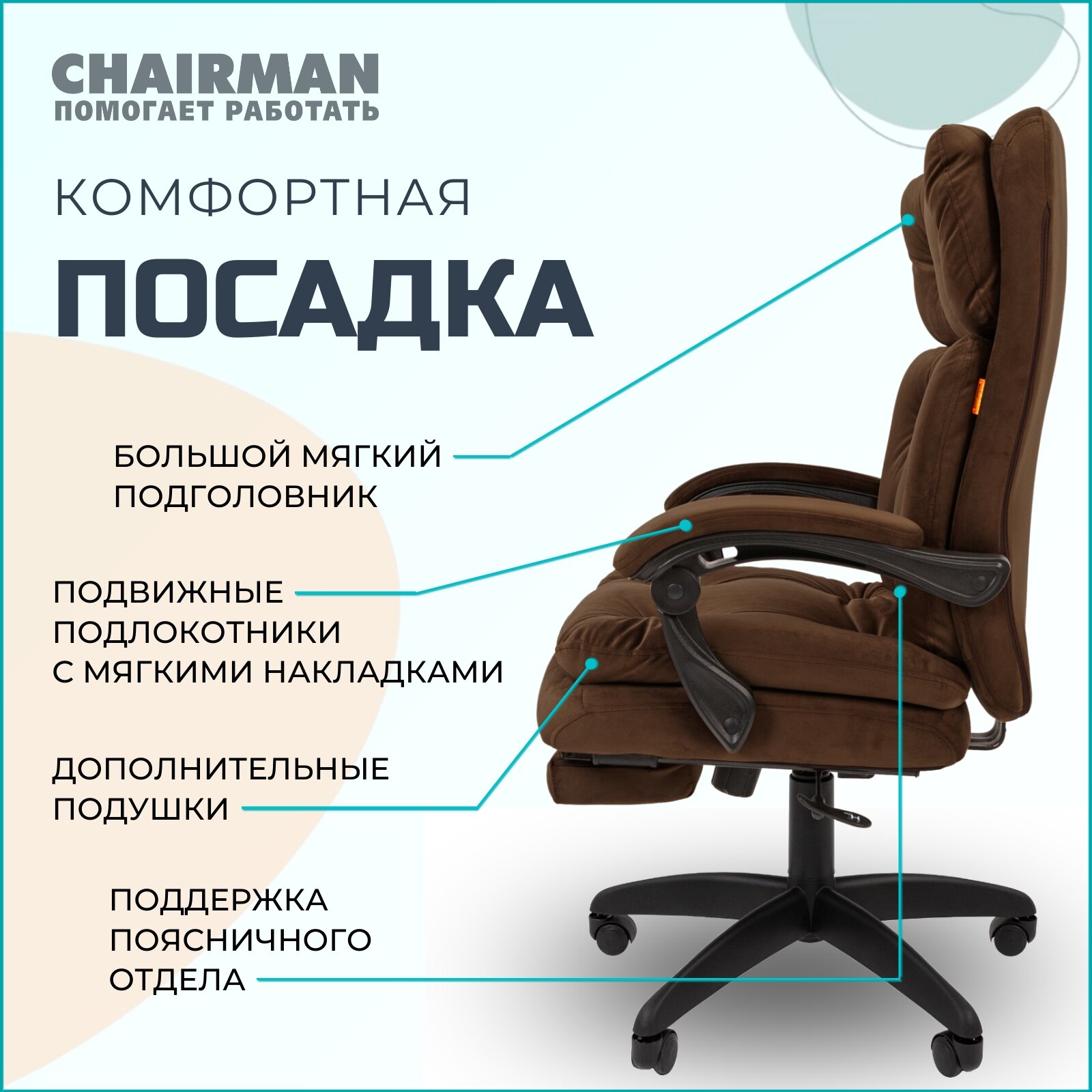 Компьютерное кресло для дома и офиса с подставкой для ног CHAIRMAN HOME 442, офисное кресло руководителя, ткань велюр, коричневый информация: