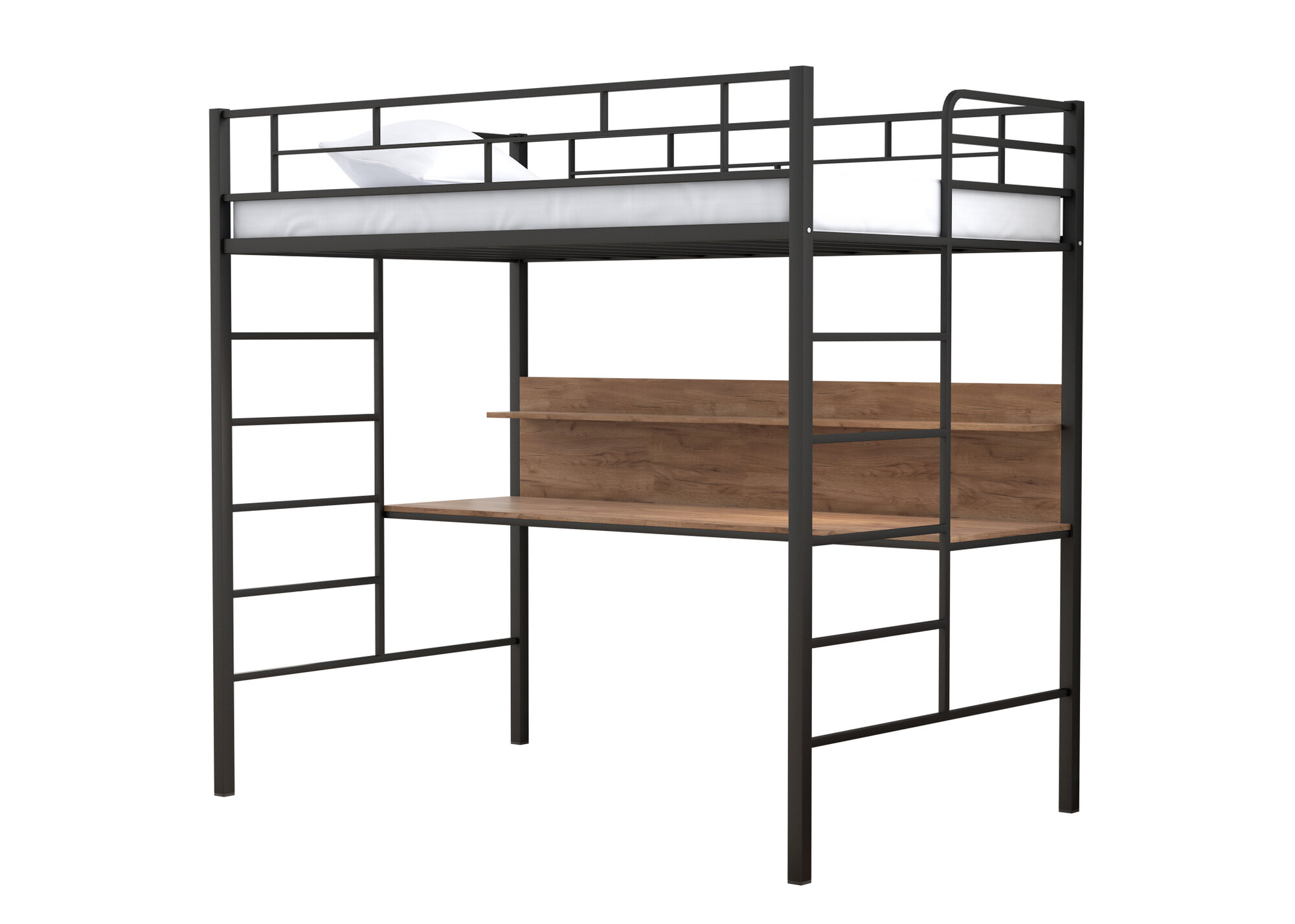 Кровать чердак "Амстердам" Черный со столом и матрасом Оптима Боннель Дуб крафт табак/ детская/ 90х190 см/ двухъярусная кровать с рабочей зоной/ для детей и взрослых/ железная/ металлическая/ двухэтажная/ взрослая/ высокая 24 980 ₽