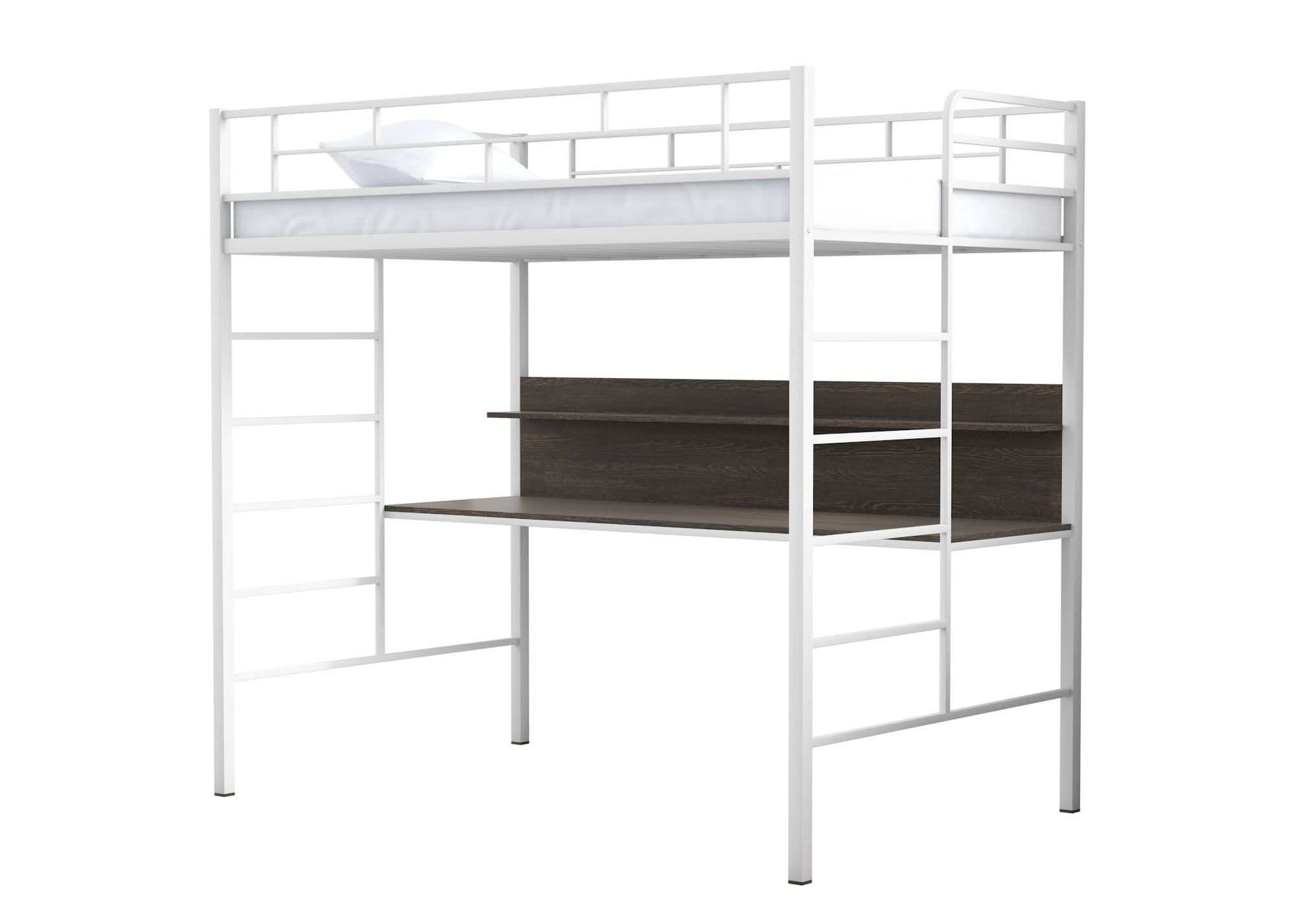 Кровать-чердак "Амстердам" Белый со столом Венге/ детская/ 90х190 см/ двухъярусная кровать с рабочей зоной/ для детей и взрослых/ железная/ металлическая/ двухэтажная/ взрослая/ высокая