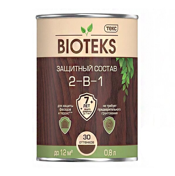 Защитный Состав 2-в-1 Текс Bioteks 0.8л Орех, не Требует Предварительного Грунтования для Наружных Работ / Текс Биотекс. 495 ₽