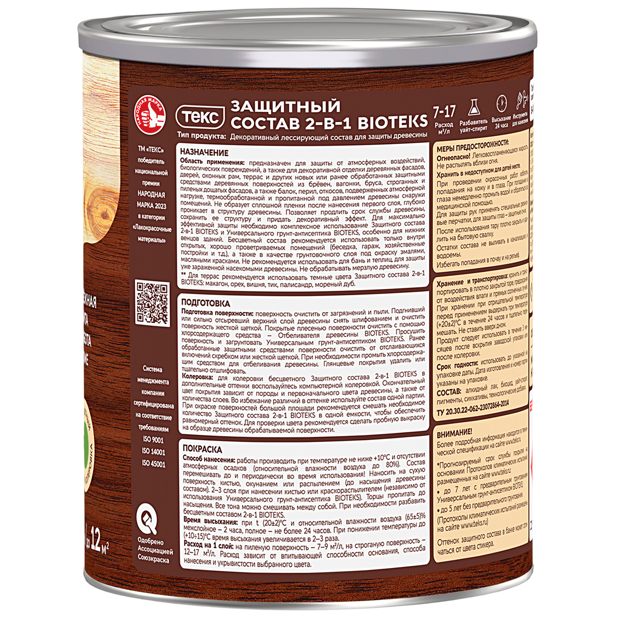 Защитный Состав 2-в-1 Текс Bioteks 0.8л Сосна, не Требует Предварительного Грунтования для Наружных Работ / Текс Биотекс. информация: