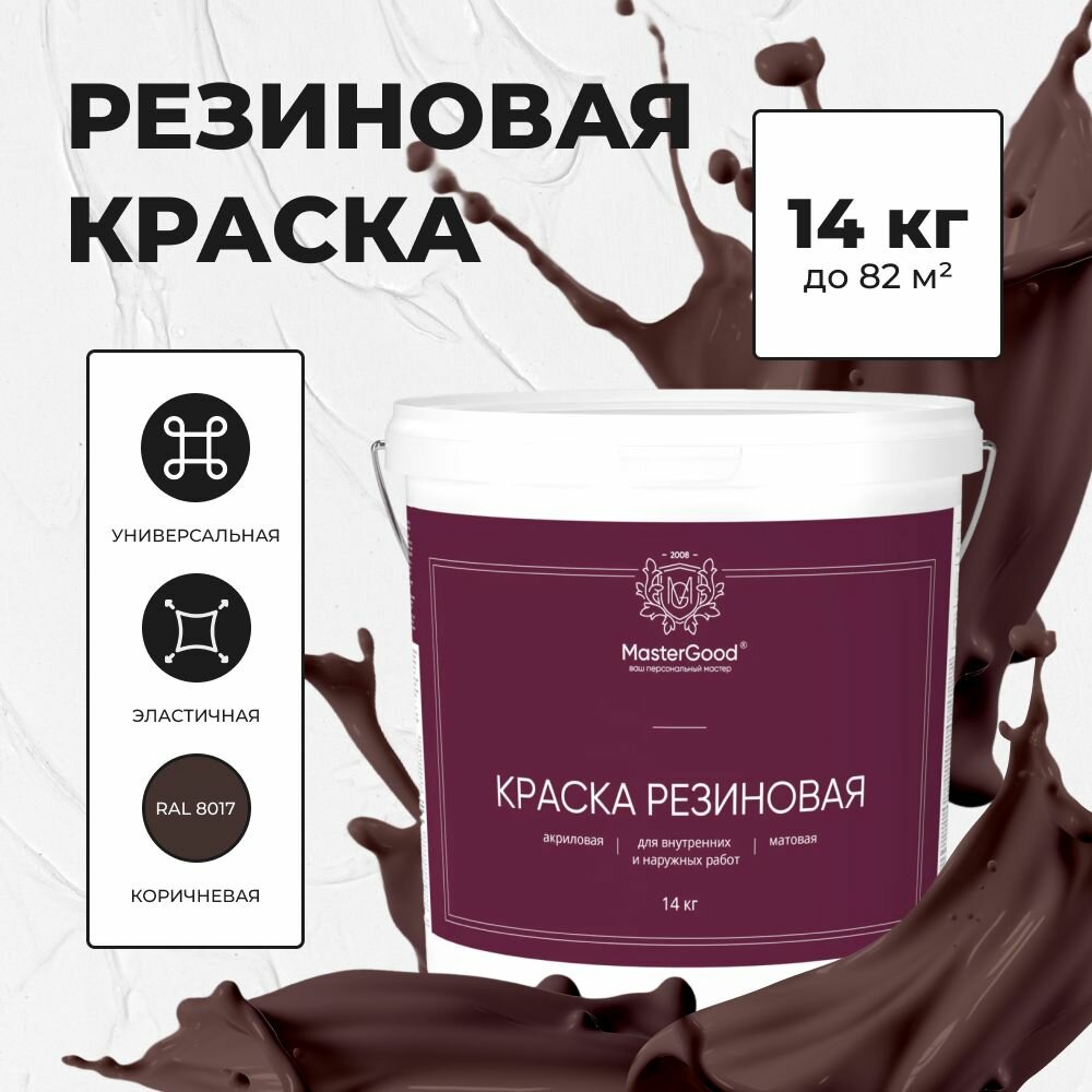 MasterGood Краска резиновая моющаяся акриловая для помещений с повышенной влажностью Темный шоколад (7 кг) RAL 8017 4 580 ₽