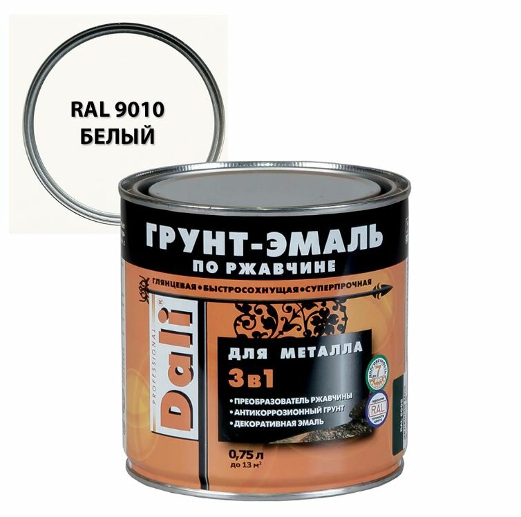 Dali Грунт-Эмаль по ржавчине 3в1 гладкая (Белый, RAL 9010, 0,75 л)