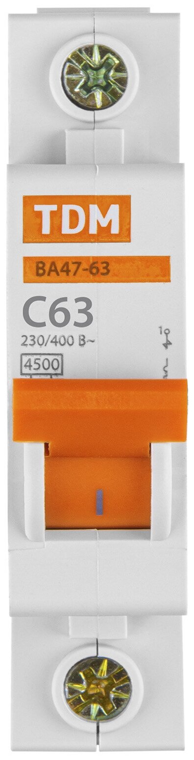 Выключатель автоматический 63А 1П однополюсный характеристика C 4,5кА ВА47-63 SQ0218-0009 TDM